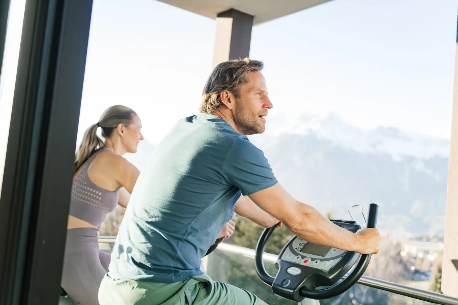 Wer den Fitnessraum im 3. Stock des Park Igls Medical Spa Resorts betritt, wird schon vor jeder Trainingseinheit mit einem grandiosen Ausblick auf das mächtige Karwendelgebirge mit der Nordkette oder die Serles, dem Hausberg des Stubaitals, belohnt. Lichtdurchflutet, großzügig und perfekt eingerichtet präsentiert sich der Fitnessraum seinen Besucherinnen und Besuchern. Zahlreiche Hightech-Trainingsgeräte bieten die passenden Übungsmöglichkeiten für jeden Bedarf, und zusätzlich stehen große Gymnastikräume für Kurse und Gruppentrainings zur Verfügung.