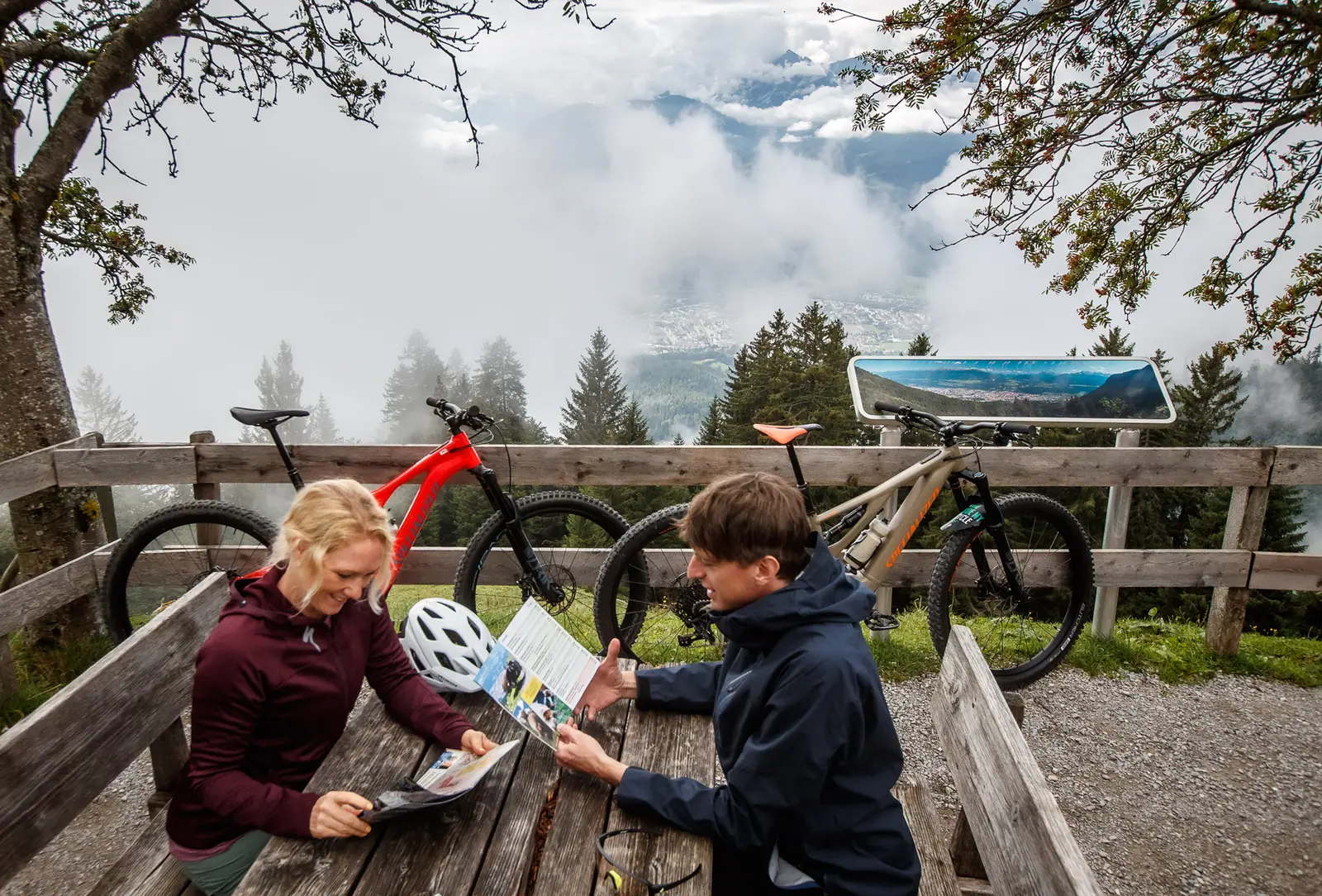 Diese Tour verbindet sportliche Betätigung mit spektakulären Perspektiven – einmal über den Inn hinweg zurück nach Igls. Der Startpunkt auf der Hungerburg an der Talstation der Nordkettenbahn ist mit dem Auto oder der Buslinie J (Heckträger für Fahrräder; begrenzt Platz im Bus) erreichbar. Von hier führt die Strecke abwechslungsreich und schattig durch den Wald, vorbei an der Arzler Alm, bis zur aussichtsreich gelegenen Höttinger Alm auf 1.482 m.