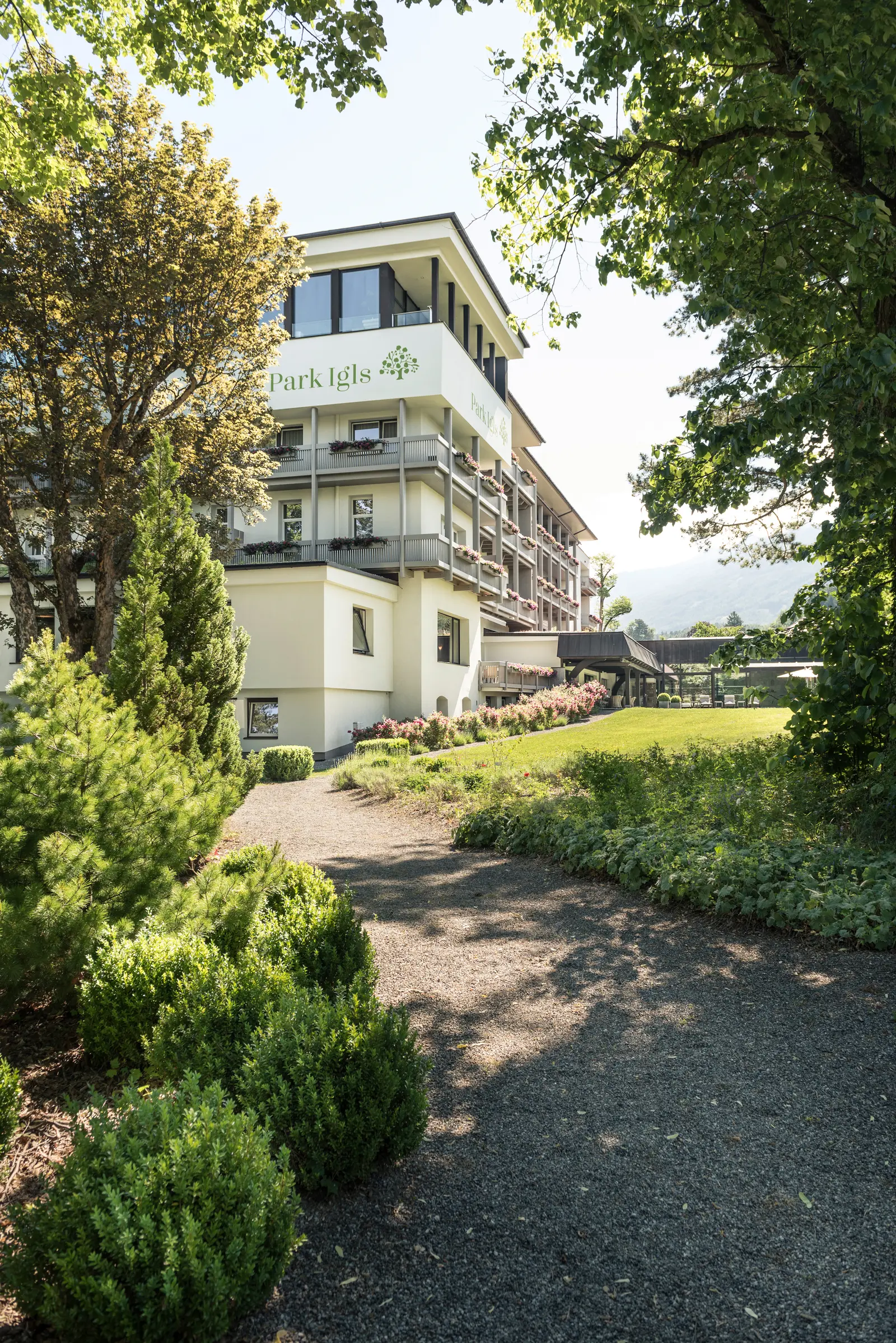 Der namensgebende Park rund um das Hotel ist geprägt durch eine wundervolle Mischung aus Pinien, Buchen, Eichen, Tannen und vielen weiteren Baumarten, Sträuchern, Blumen und Kräutern. Manche der grünen Riesen haben die Anfänge des Park Igls Medical Spa Resorts miterlebt und spenden heute Schatten und Wohlbefinden für die Gäste. 2024 wurde unser Park erweitert und ist jetzt so groß wie 6,5 Tennisplätze. Der perfekte Ort, um Durchzuatmen und Ruhe zu finden.