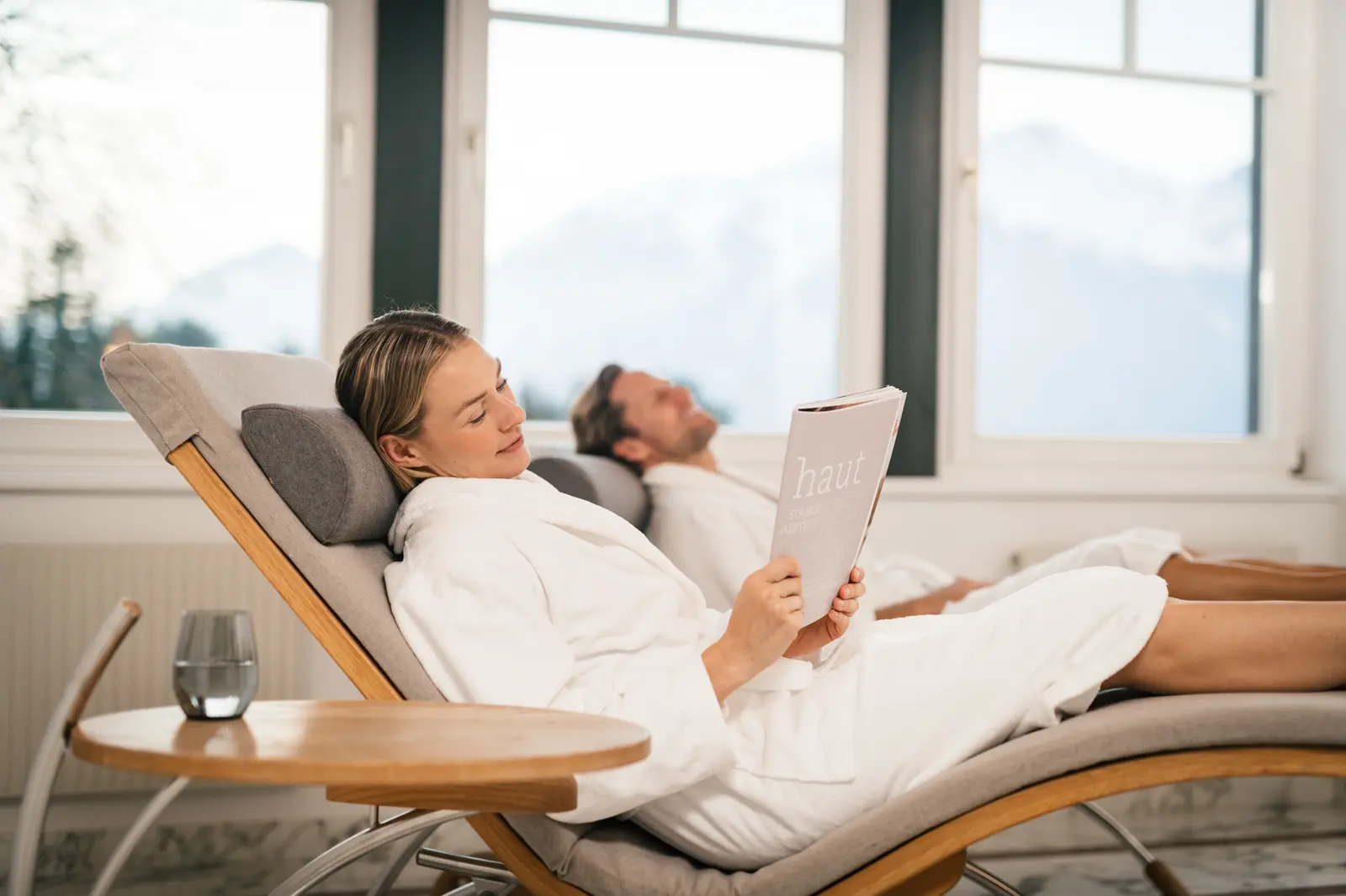 In verschiedenen Bereichen der Spa-Landschaft sind Ruhezonen mit angenehmen Liegen zu finden. Stets prägen der schöne Ausblick und die absolute Ruhe das Bild. Im Sommer weht durch geöffnete Türen eine sanfte Brise, während im Winter die Schneeflocken hinter den großen Glasfronten tanzen. Das ist Wellness im Innsbrucker Land.