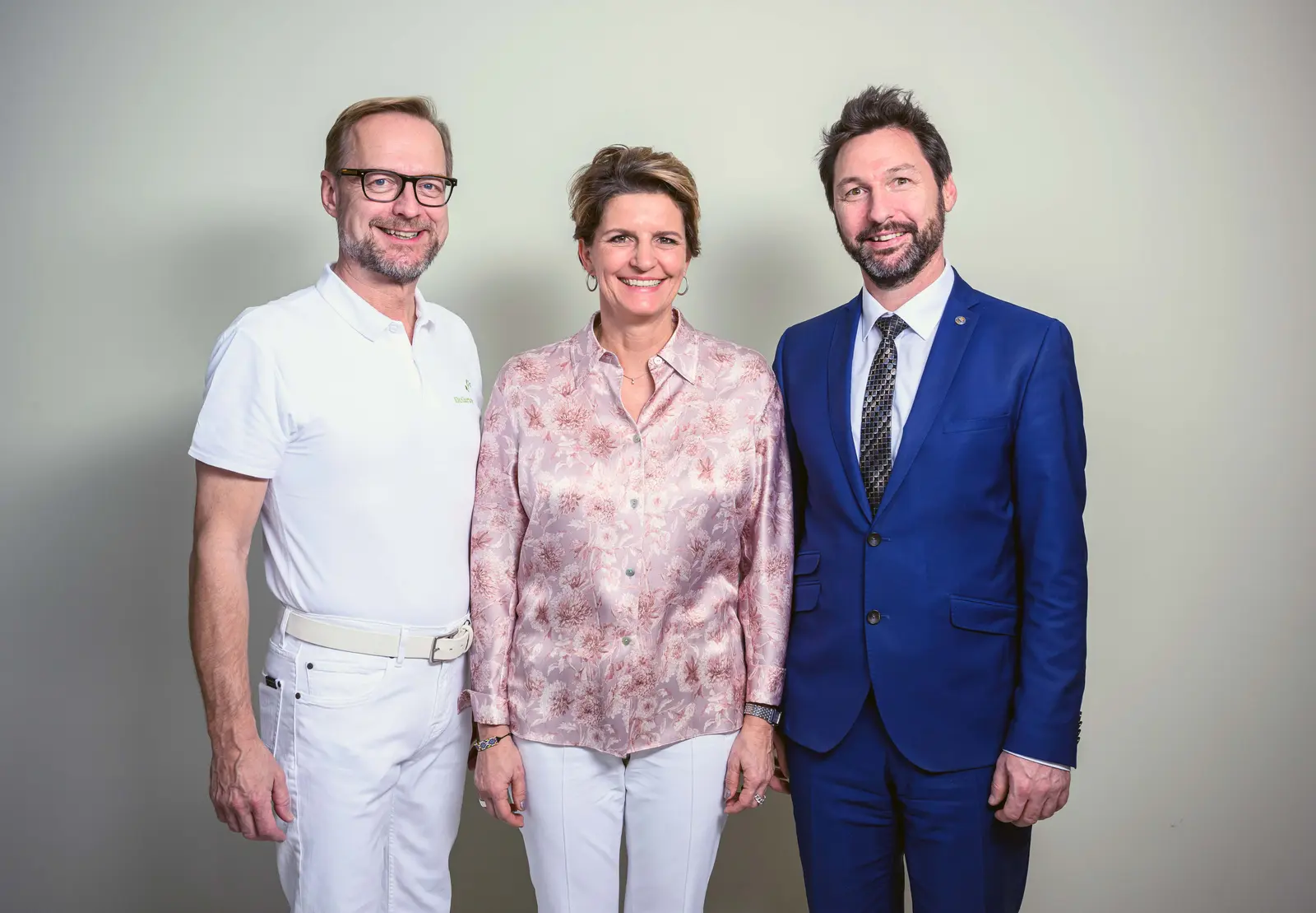Eine jahrzehntelange harmonische Zusammenarbeit mit besten Ergebnissen spricht eine deutliche Sprache. Auch auf Führungsebene wird gegenseitige Wertschätzung und kontinuierliche Optimierung täglich praktiziert. Für die Leitung im Park Igls Medical Spa Resort sind verantwortlich (von links nach rechts):